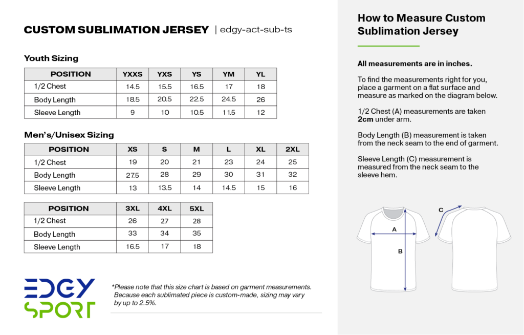 Create Custom Sublimation Shirts that are built for performance and designed by you. With Edgy Sport’s 3D Kit Builder, you control every detail from colors and patterns to collar style, logos, and player names. Each shirt is fully sublimated and made to order, giving you complete creative freedom and a professional finish that lasts.
