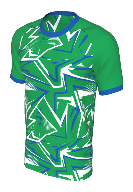 Bring your team’s look to life with our “Shockwave” Jersey Design—one of many styles available in the Edgy Sport 3D Kit Builder for our Custom Sublimation Jersey. The images shown here are just a few examples of how you can personalize your team’s colors and style. Open the 3D builder to customize every detail—select your color scheme, upload team logos, and add names and numbers directly on the jersey.